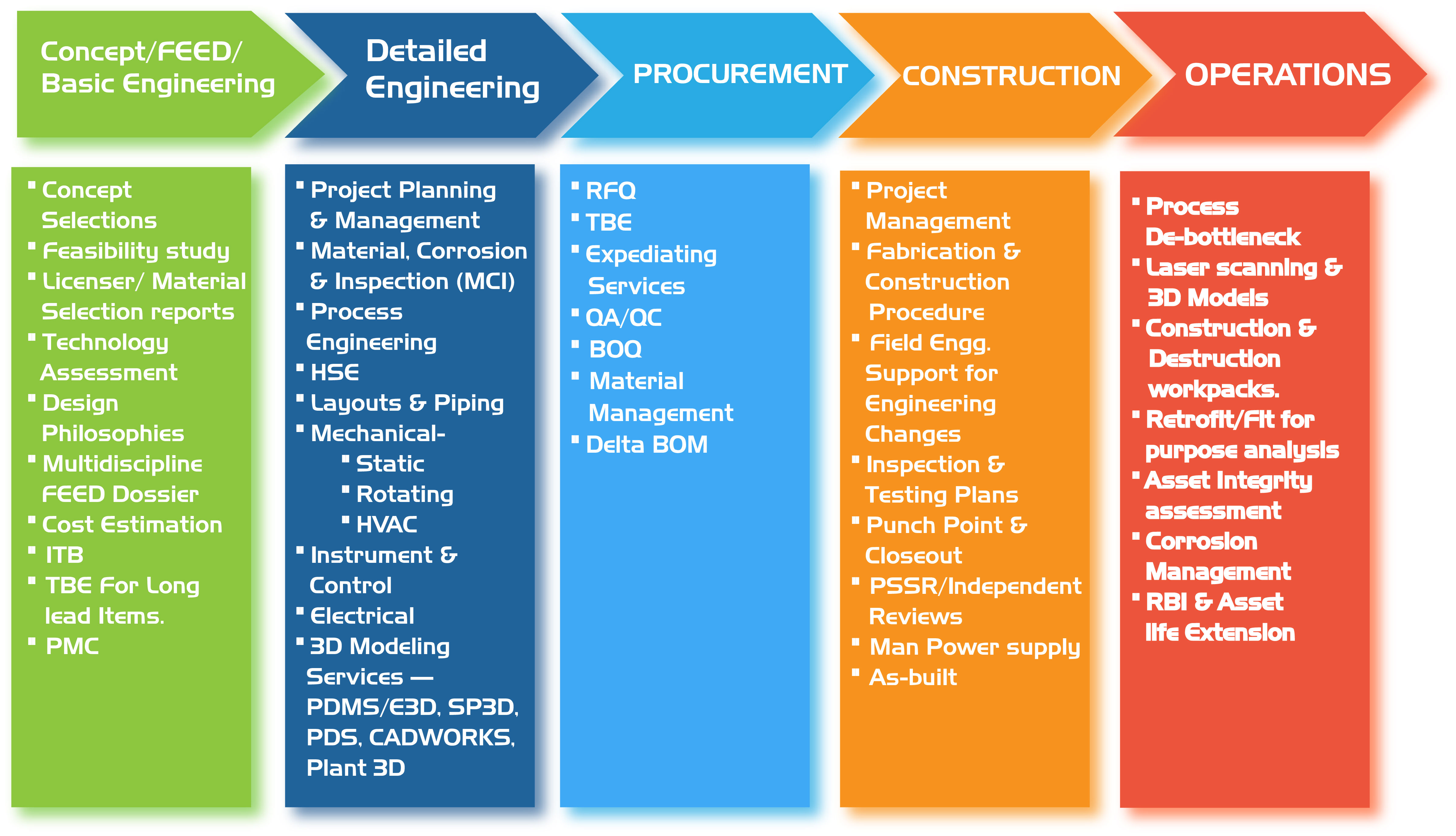 Load calculations, fault analysis, Cable sizing & Scheduling, Tray sizing, transformer sizing.